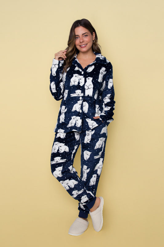 Women's Long American Pajama Fleece Bear