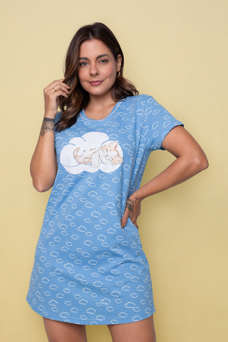 Women's Short Cotton Nightgown POA Blue
