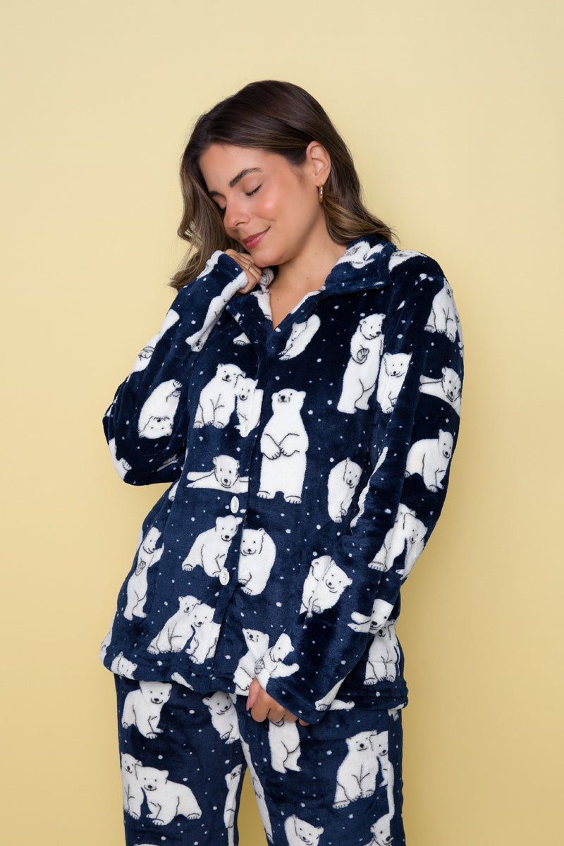 Women's Long American Pajama Fleece Bear