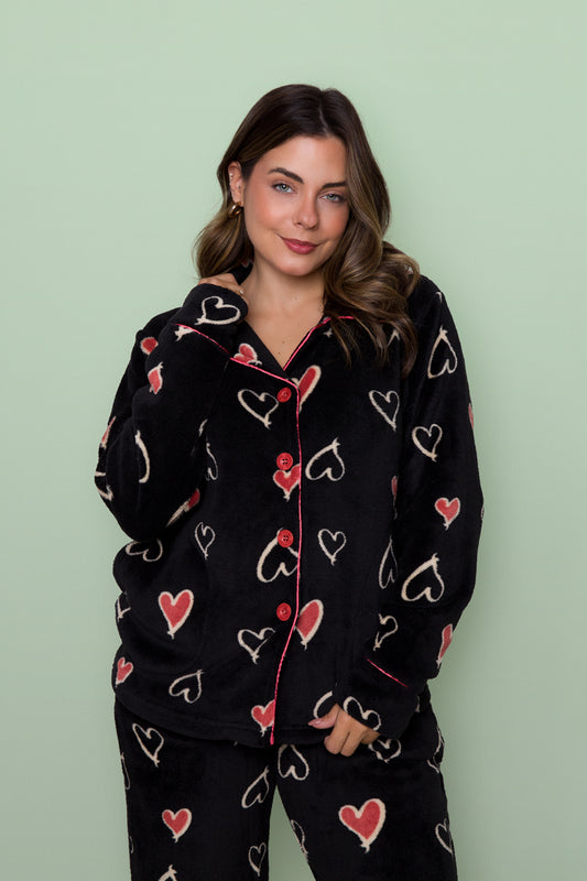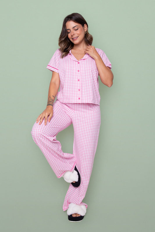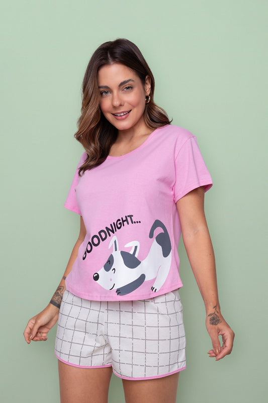 Women's Short Cotton Cami Pajama Set in Plaid Hearts