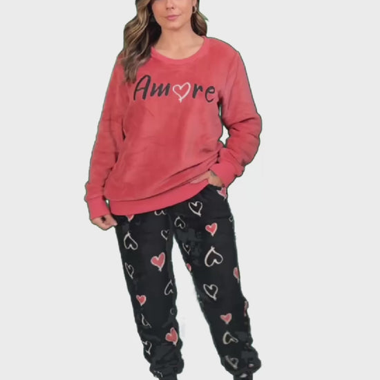 Our Women's Long American Pajama Fleece Love are made from 100% polyester fleece. Pink Dream monitors its raw materials. We choose the types of fibers we will use, then the types of yarns and weaving techniques. The dyeing and printing processes are carried out with Pink Dream partners, all of whom are certified to care for the environment. This way, Pink Dream delivers the best raw material with the lowest environmental impact.