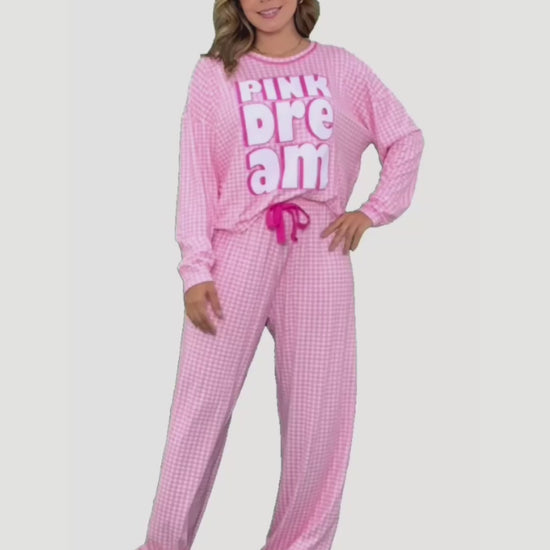 Women's Long Pajama Set in Soft Pink Plaid