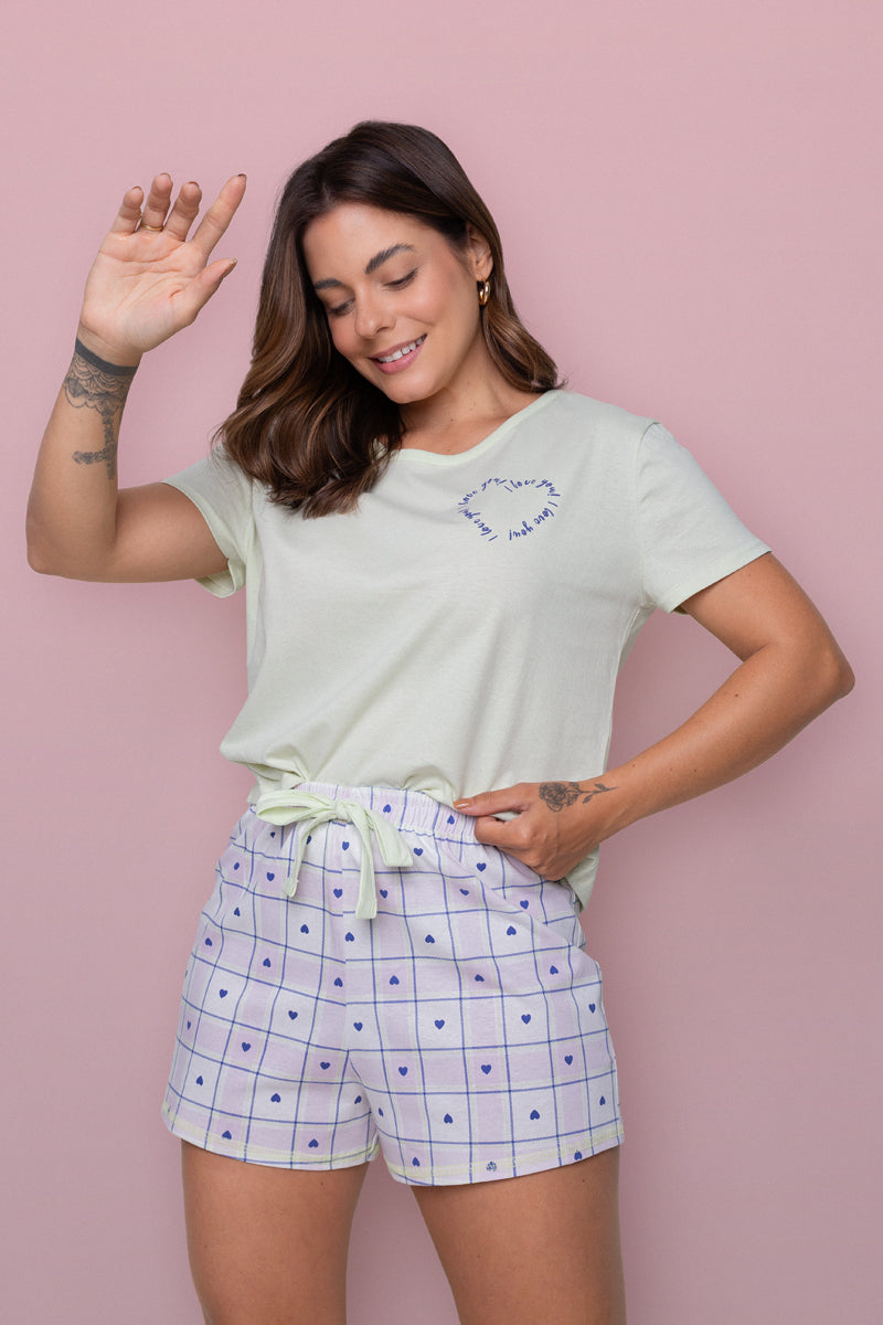 Drift into comfort with our Women's Short Pajama Set in Lime Heart Plaid, designed with soft, breathable fabric that feels gentle against the skin. The lime heart plaid pattern adds a vibrant, playful touch. It’s the perfect set for a cozy, cheerful night in!