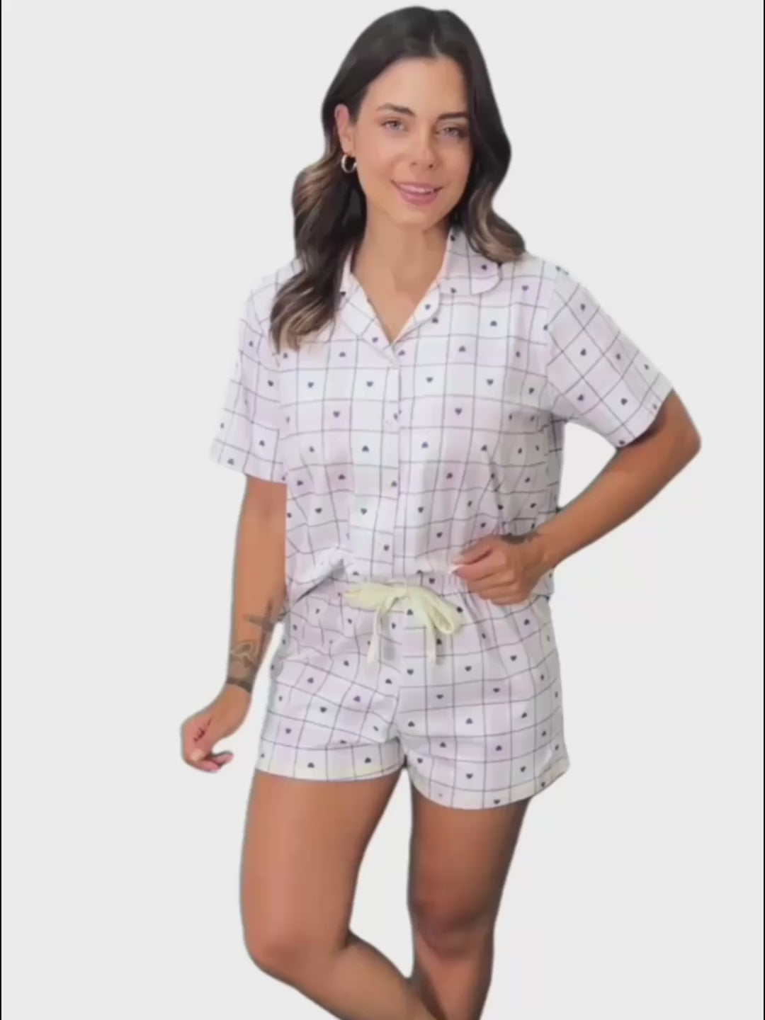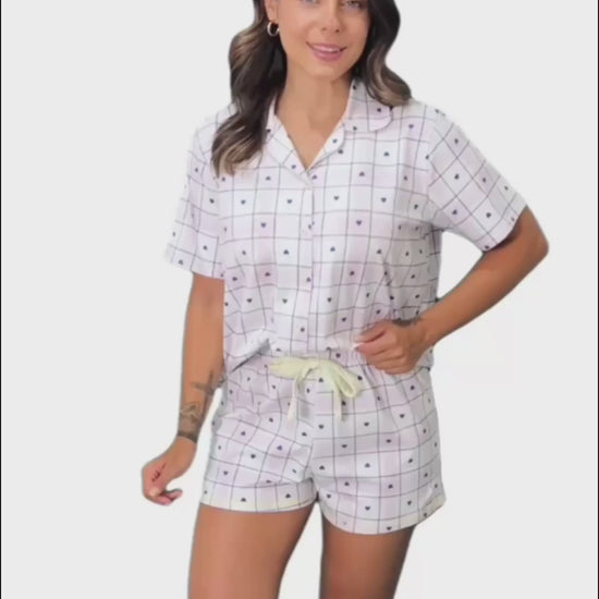 Fall in love with our Women's Short Pajama Set in Checkered Hearts, featuring a playful heart-and-plaid combo in a comfy, lightweight fabric. A charming blend of sweet and cozy that brings fun to your bedtime vibe. A lovely pick for dreamers who adore cute prints!